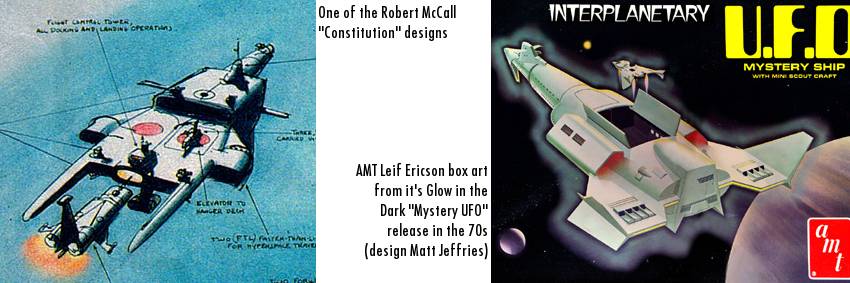 | Constitution (right) and the Leif Erickson (as UFO mystery ship, on left) |